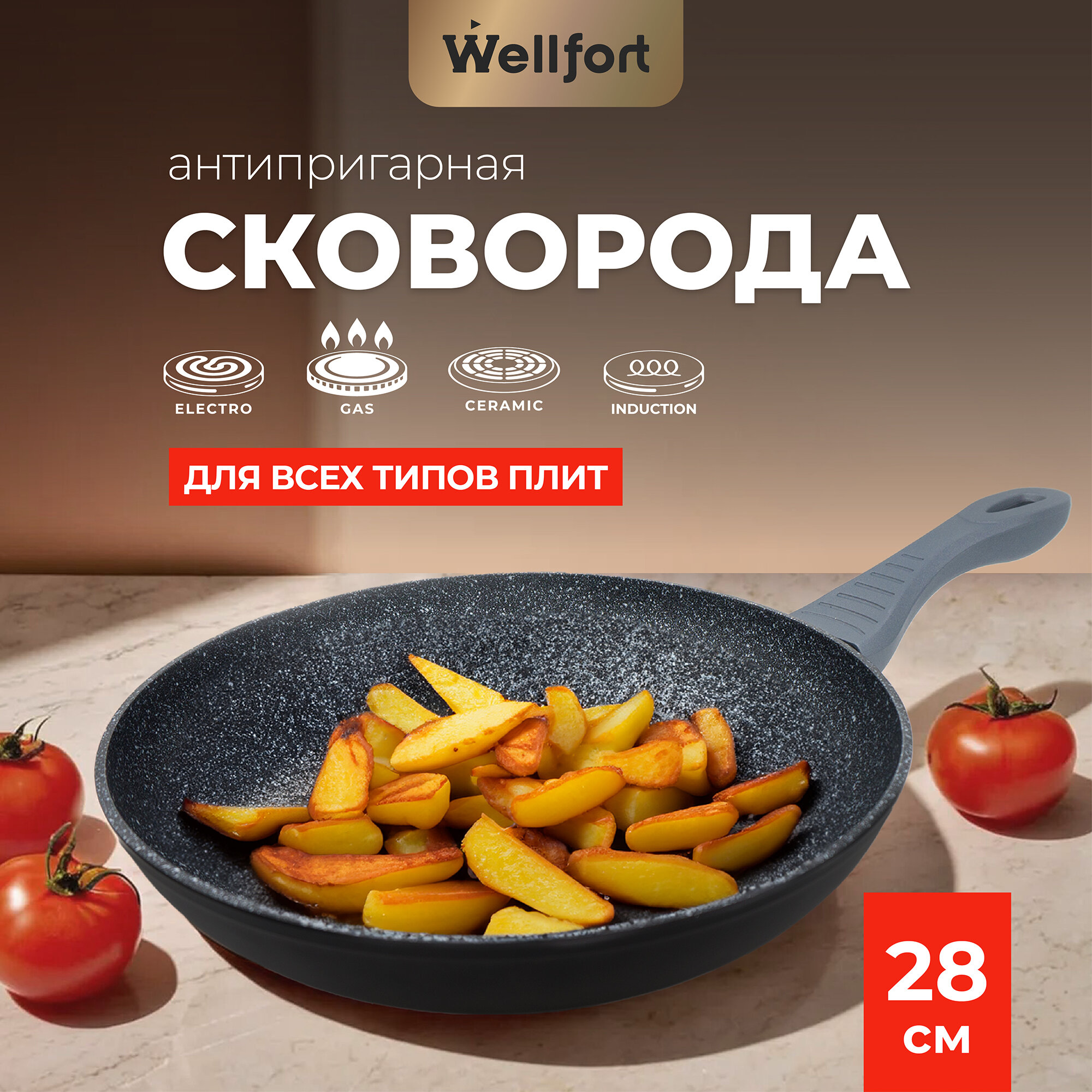 10 цен на Сковорода из кованного алюминия Wellfort с антипригарным индукционным покрытием 28 см.