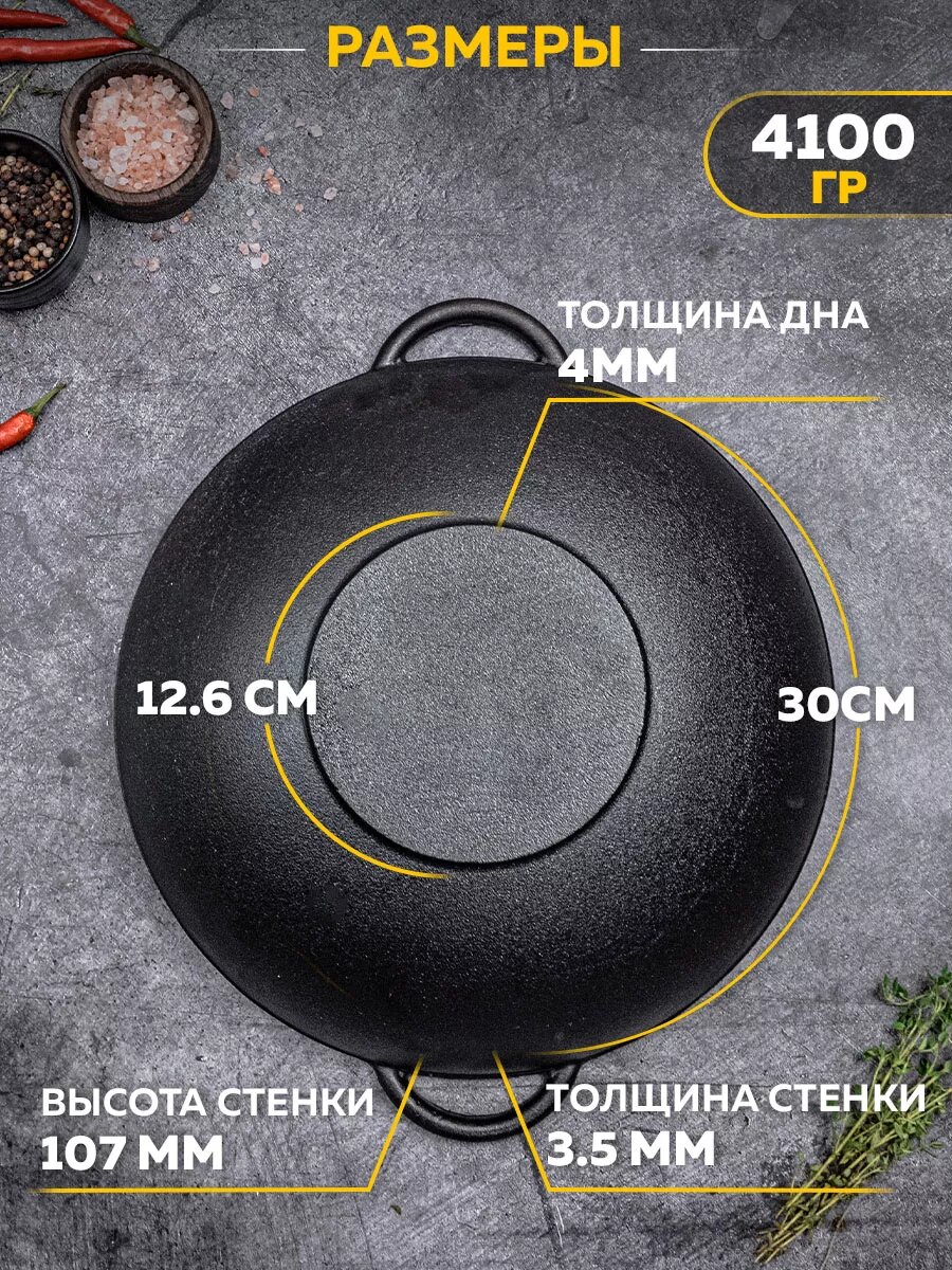 Чугунная сковорода WOK на 30 см информация: