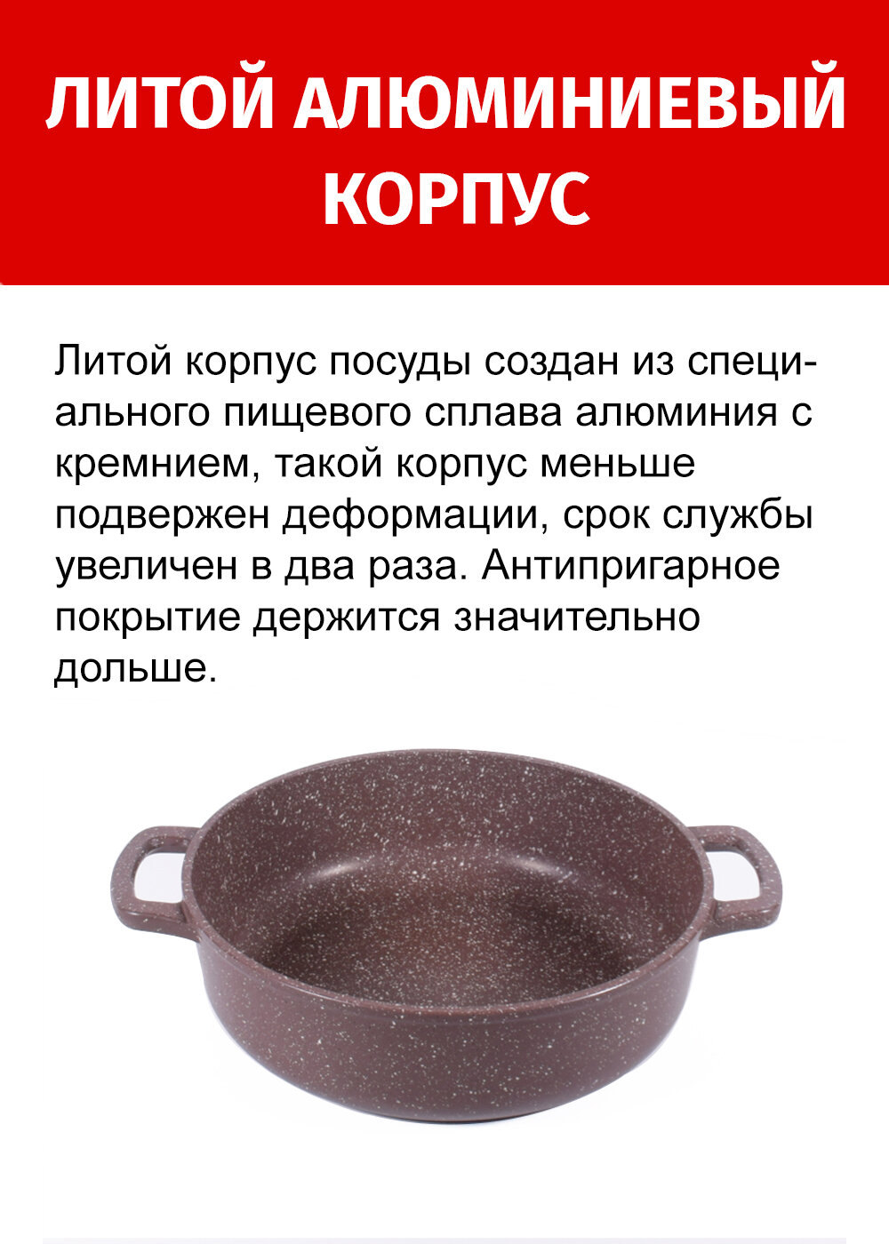 Сотейник жаровня с крышкой 3л/26см ТМ традиция Доломит с каменным покрытием, Россия + Лопатка в подарок информация: