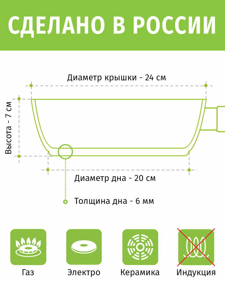 Сотейник жаровня с крышкой 2,5л/24см ТМ традиция Доломит с каменным покрытием, Россия + Лопатка в подарок информация: