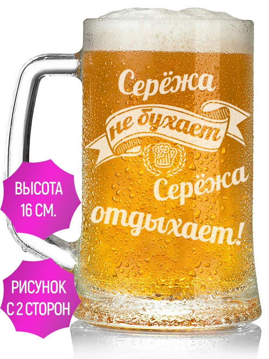 Кружка для пива Серёжа не бухает Серёжа отдыхает - 650 мл. информация: