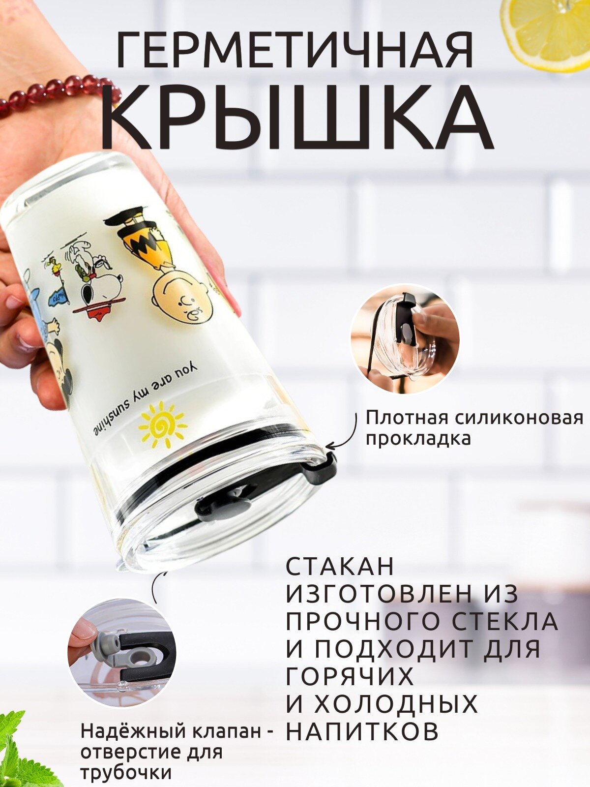 Стеклянный стакан с крышкой трубочкой 450 мл Стакан с рисунком информация: