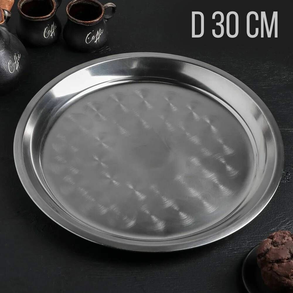 Поднос для подачи блюд и сервировки стола металлический , круглый, нержавеющая сталь, цвет хромированный, размер 30х2,5 см информация: