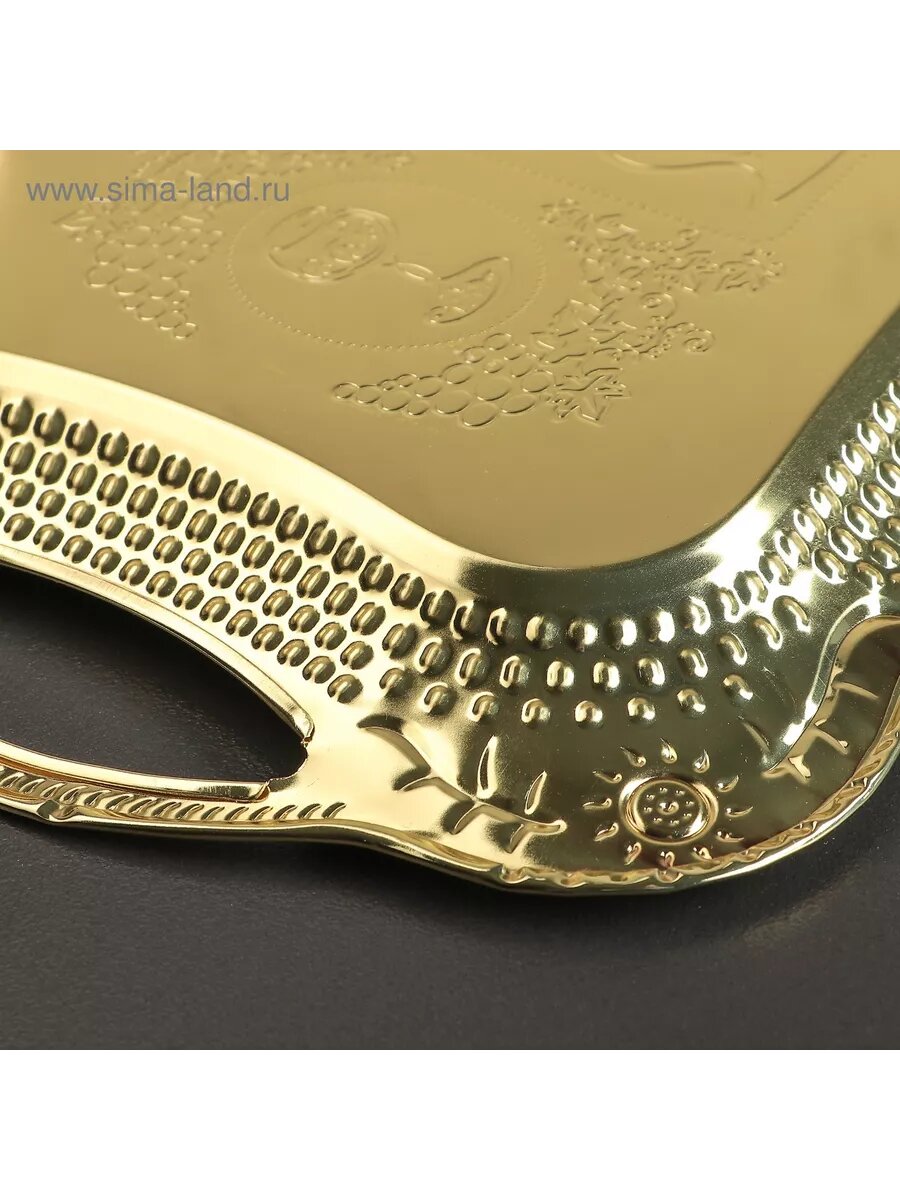 Поднос из нержавеющей стали с ручками «Изобилие. Золото», 31×20×2 см, цвет золотой