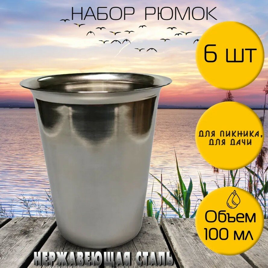 10 цен на Стопка. Набор из 6 штук. Объем 100 мл. Нержавеющая сталь.