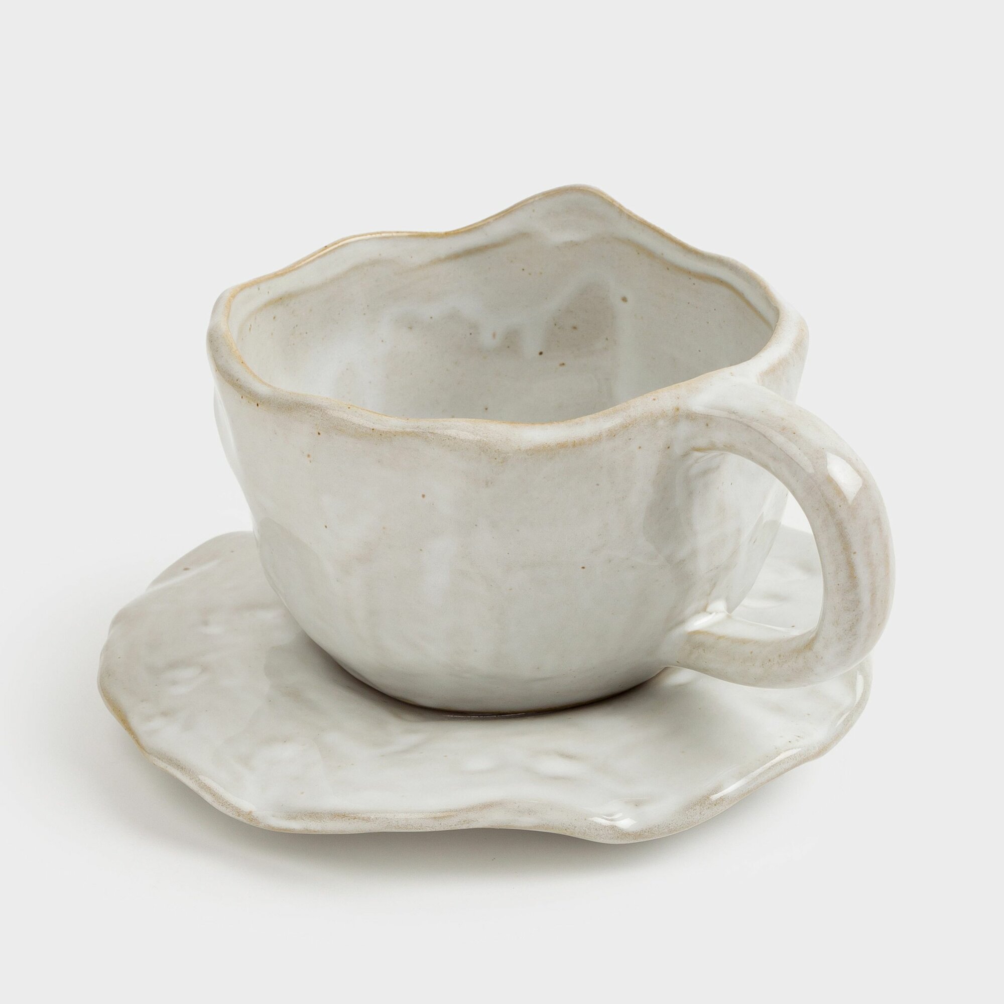 Пара чайная, 1 перс, 2 пр, 350 мл, фарфор P, бежево-молочная, Мятый эффект, Crumple color информация: