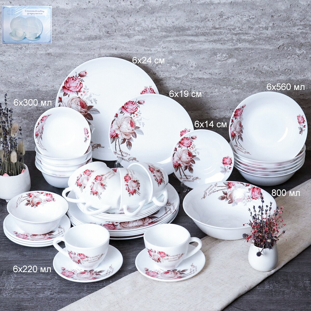 Столовый набор "Чайная роза" дэй - 37 предметов информация:
