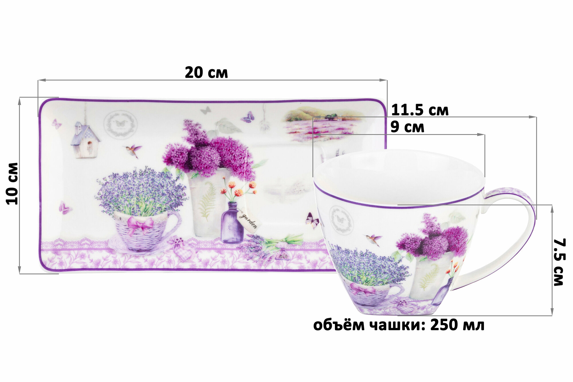 Набор 2-х чашек 250 мл с блюдцами для десерта 20х10х2 см Elan Gallery Лаванда информация: