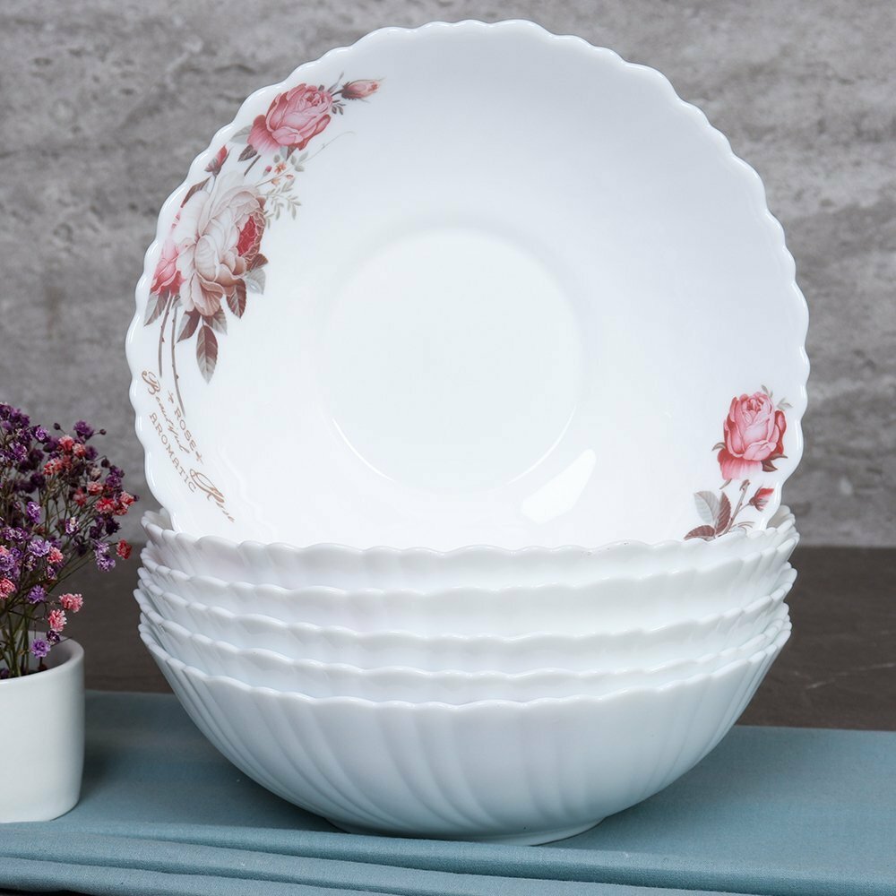 Салатник 480 мл 155 мм тарелка глубокая WHITE LILY "Кустовая роза" 6 штук