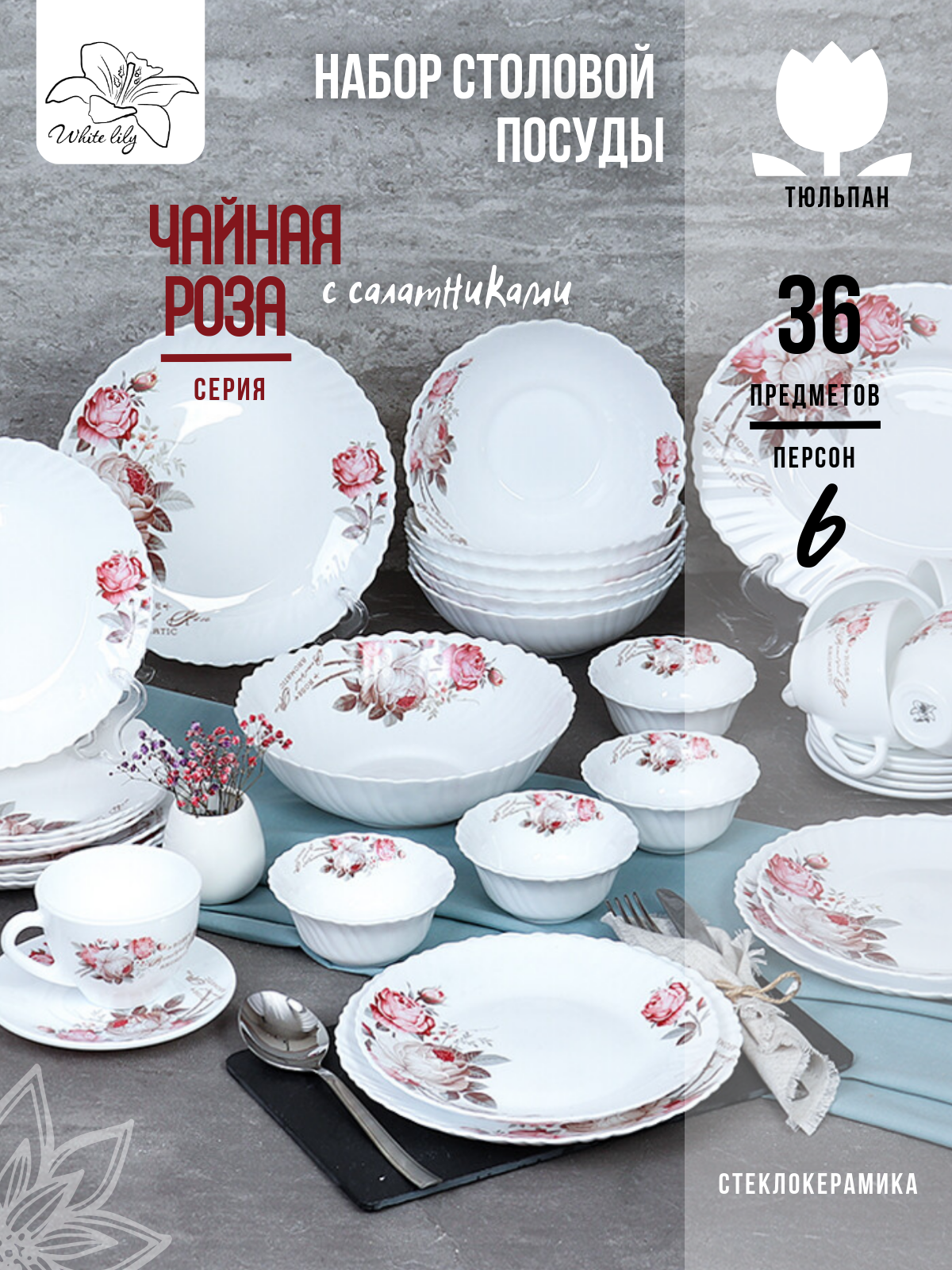 Столовый набор из серии "Чайная роза" (тюльпан) - 36 предметов на 6 персон информация: