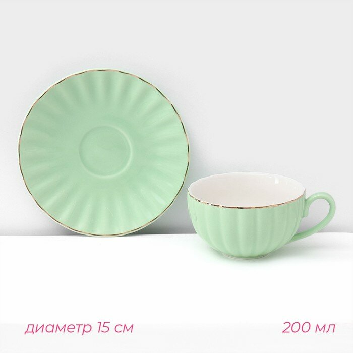 Сервиз фарфоровый чайный Доляна «Вивьен», 12 предметов: 6 чашек 200 мл, 6 блюдец d=15 см, цвет зелёный информация: