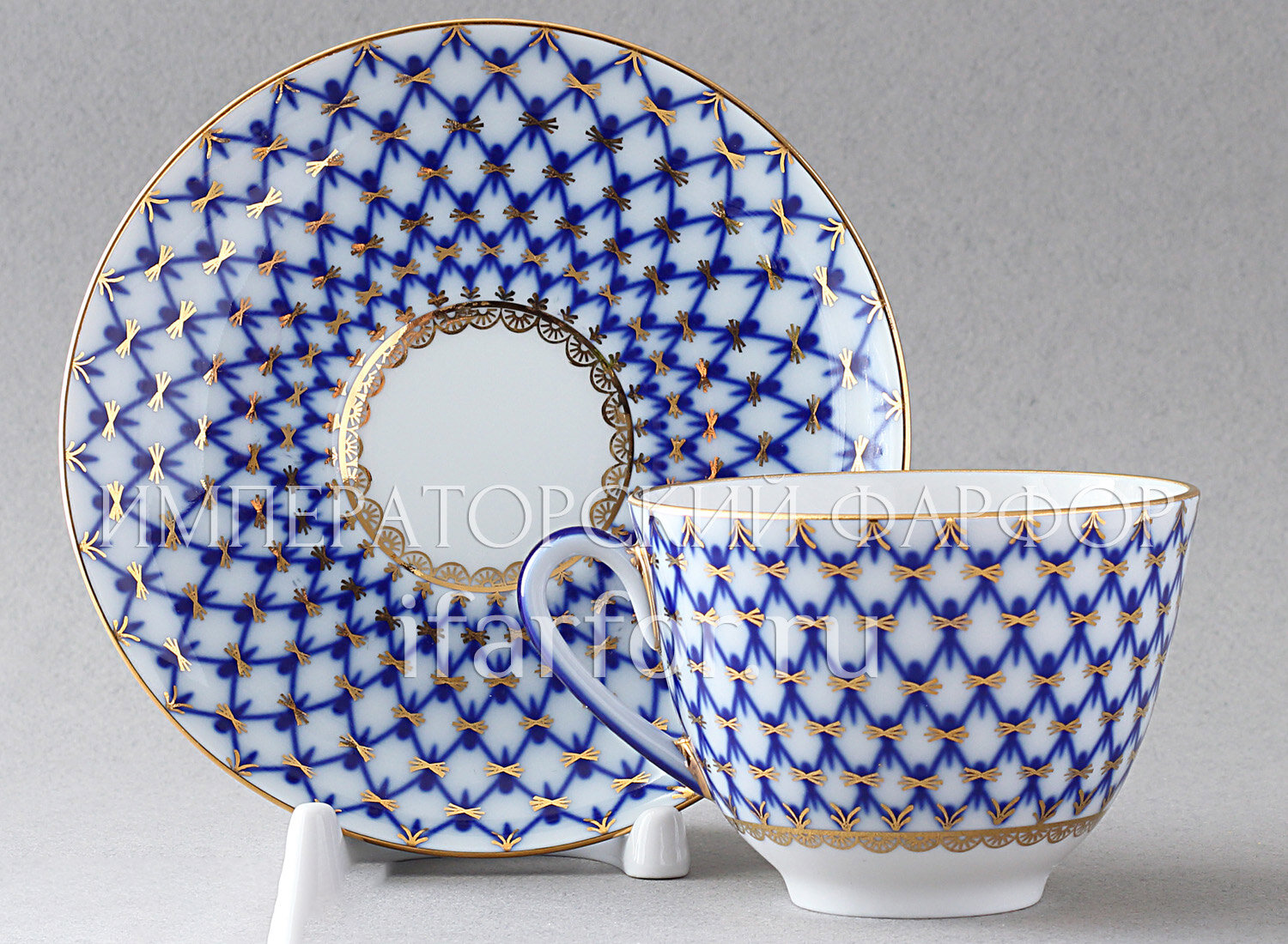 Чашка с блюдцем чайная Императорский фарфоровый завод Весенняя Кобальтовая сетка 250 мл информация: