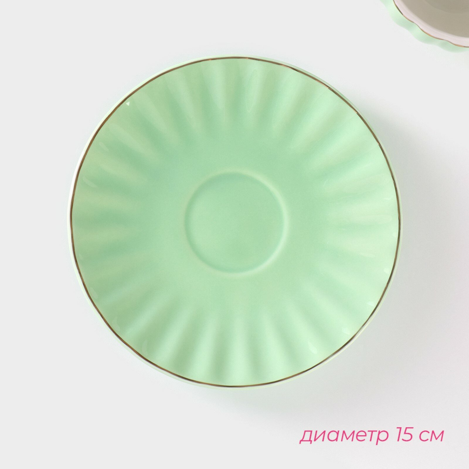 10 цен на Чайная пара Доляна фарфоровая "Вивьен " чашка 200 мл, блюдце 15 см, зеленый