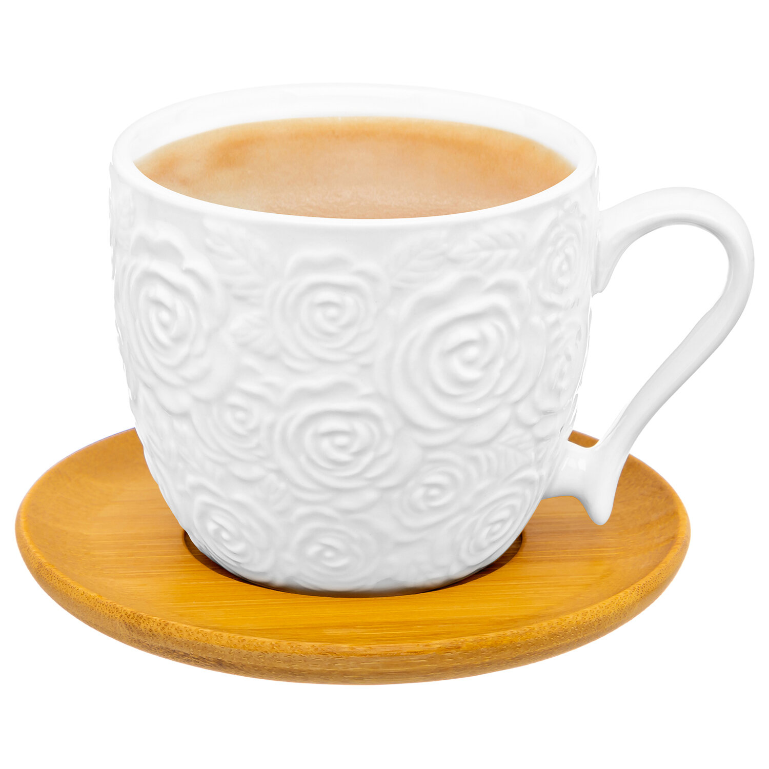 10 цен на Чашка / кружка для капучино и кофе латте 250 мл 11х8,3х7,5 см Elan Gallery Розы на деревянной подставке
