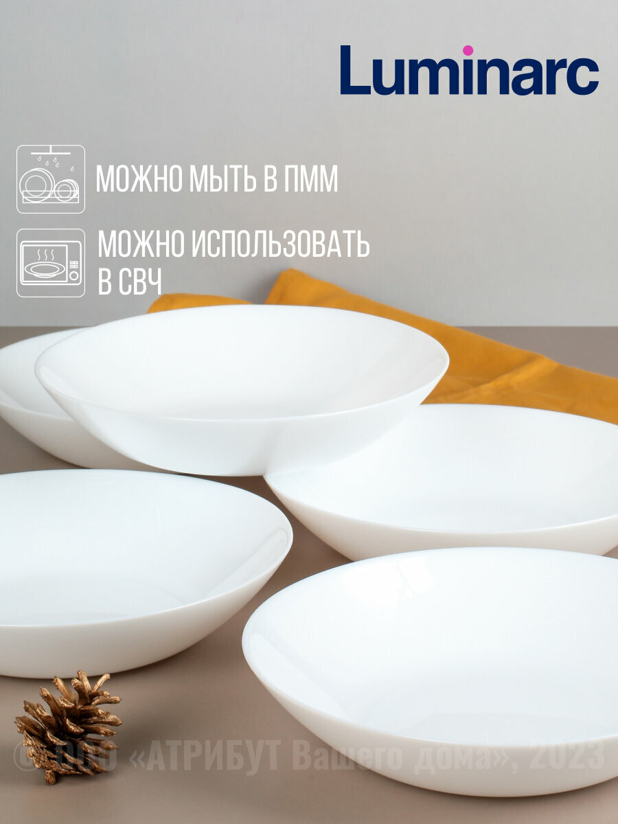 Тарелки Luminarc DIWALI, 700 мл, d=20 см, глубокие, стеклокерамика, набор 6 шт, белые 2 699 ₽