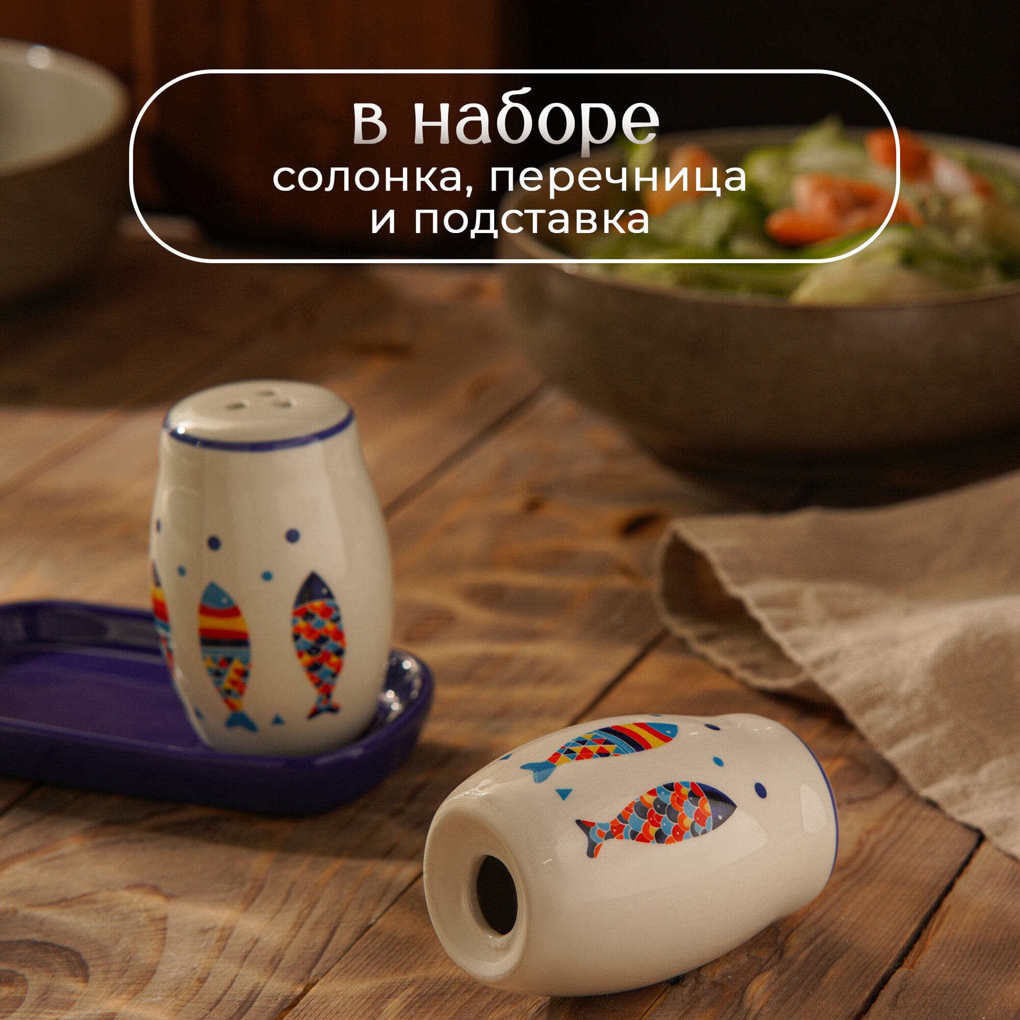 Набор для специй Доляна "Лист", 3 предмета: солонка 80 мл, перечница 80 мл, подставка, цвет зеленый 961 ₽