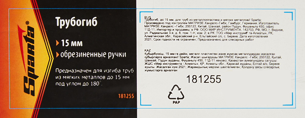 Трубогиб ручной рычажный Sparta для труб диаметром до 15 мм информация:
