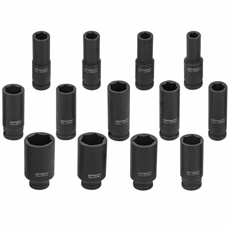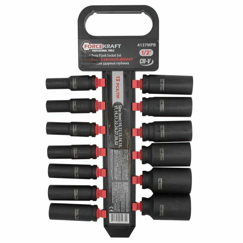 Набор головок ударных FORCEKRAFT глубоких 13 предметов 1/2''(10-32мм) на пластиковом держателе информация: