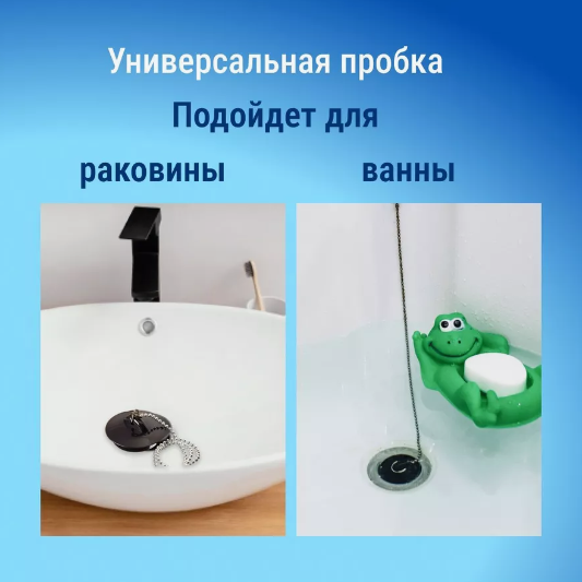 Отзывы на Пробка для ванной с цепочкой, 29см - 4,5см, универсальная, цвет черный, длина 29