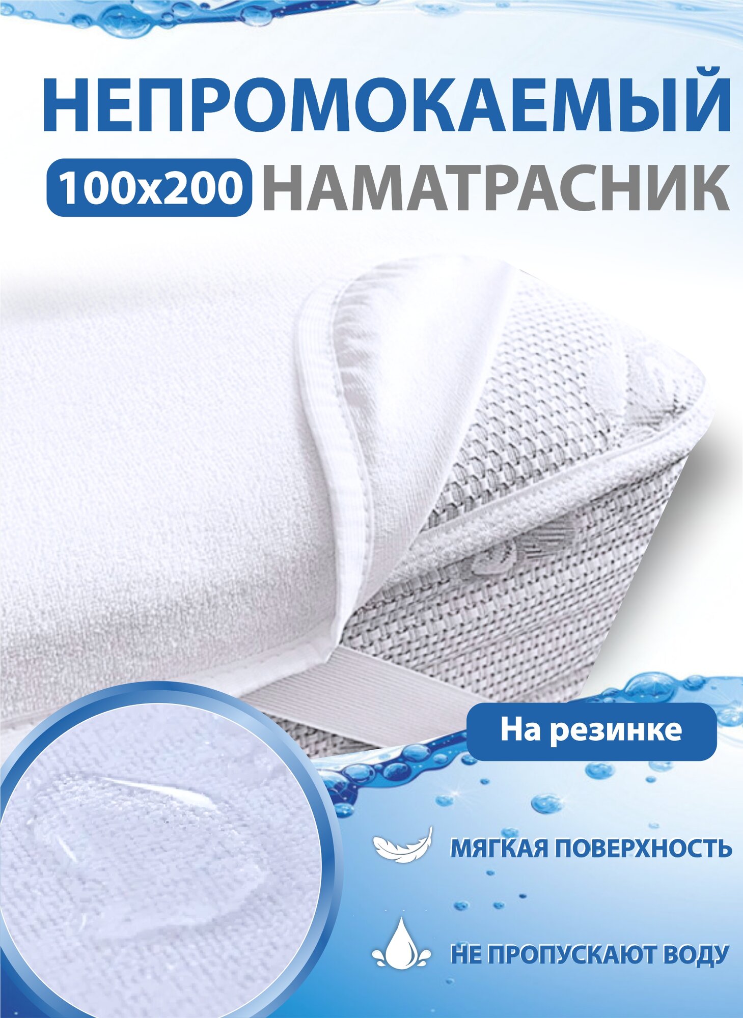 10 цен на Наматрасник непромокаемый с резинками по углам, махра/мембрана 100х200