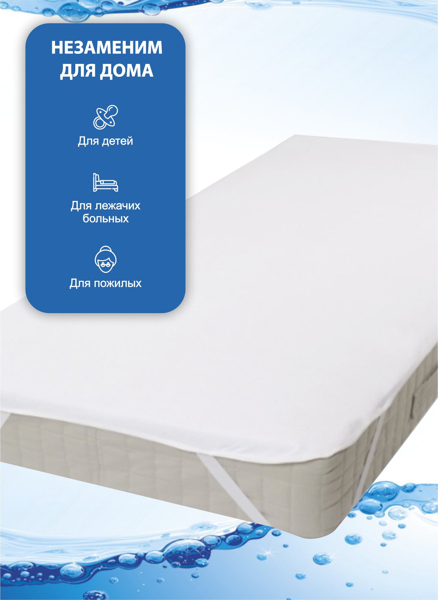 Отзывы на Наматрасник непромокаемый с резинками по углам, махра/мембрана 70х200