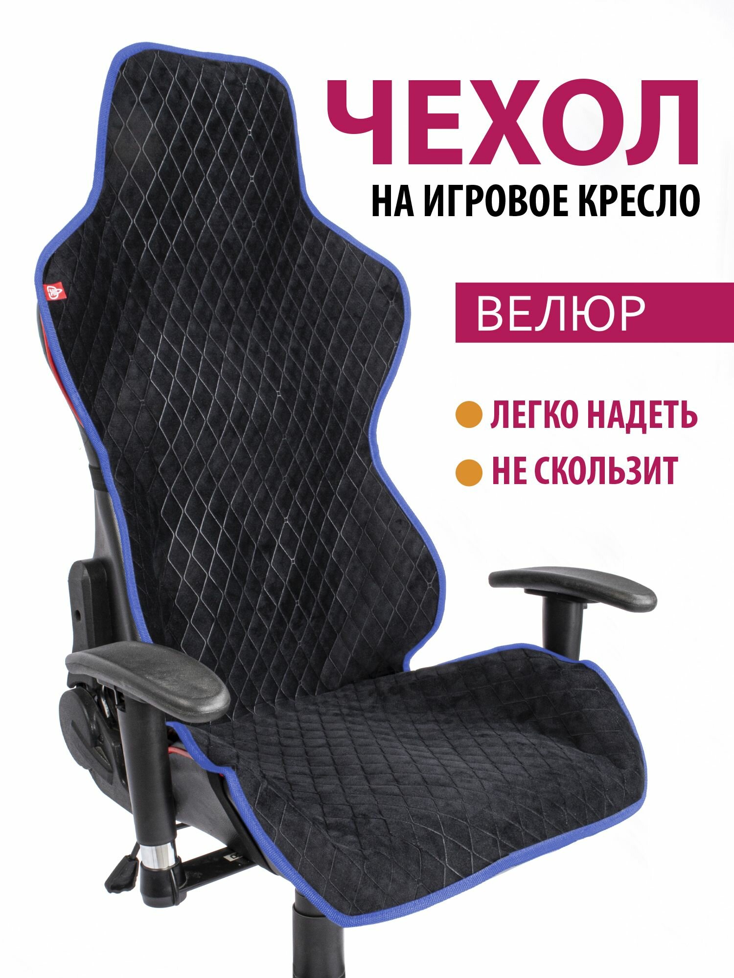 Отзывы на Чехол (накидка) для компьютерного игрового кресла Ромб черный с синим кантом