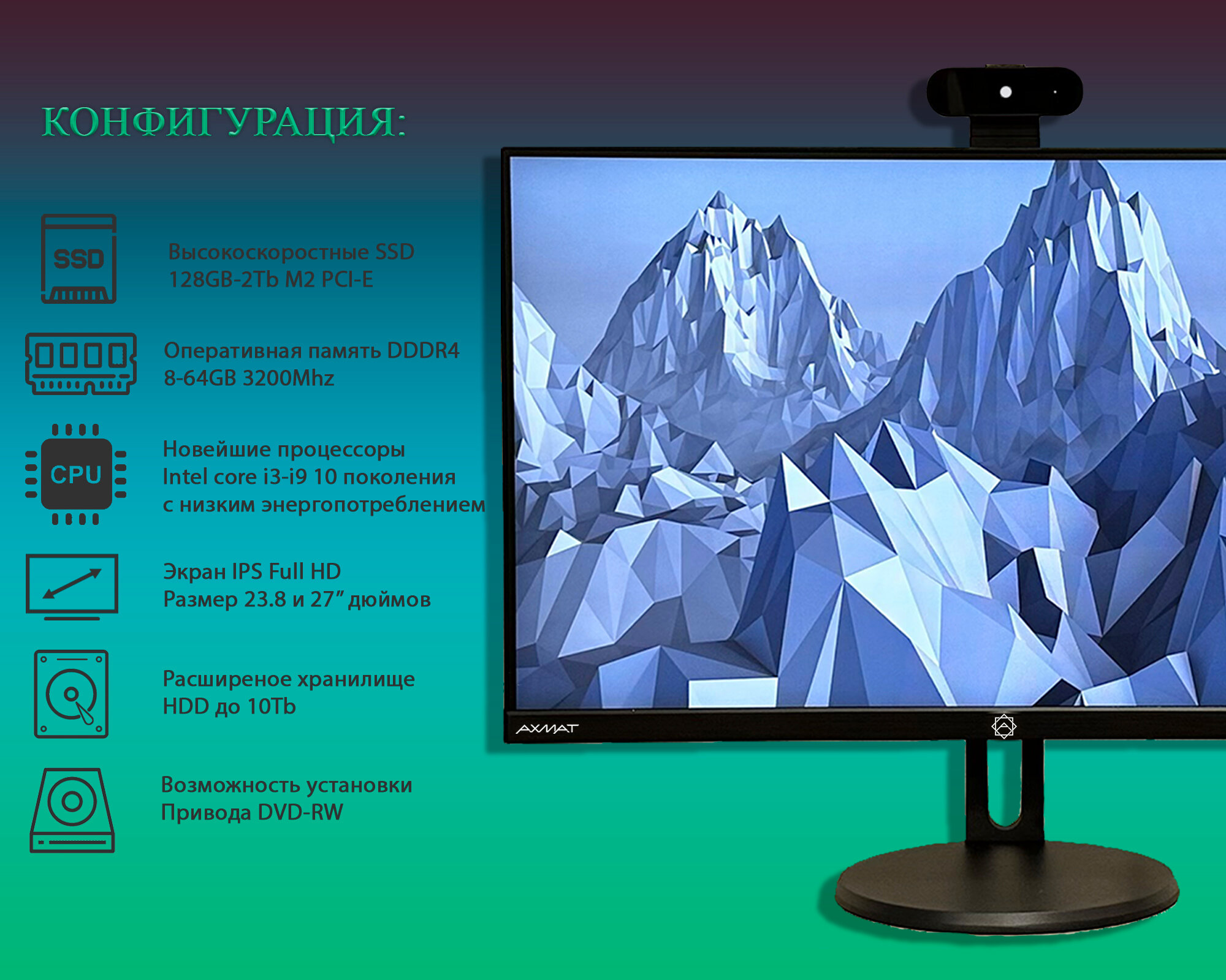 10 цен на 27" Моноблок Nepal D270 Intel Core i3-10100, 4x3.0 ГГц, IPS, Full HD (1920x1080), 8 ГБ DDR4, SSD 256 ГБ, noOs
