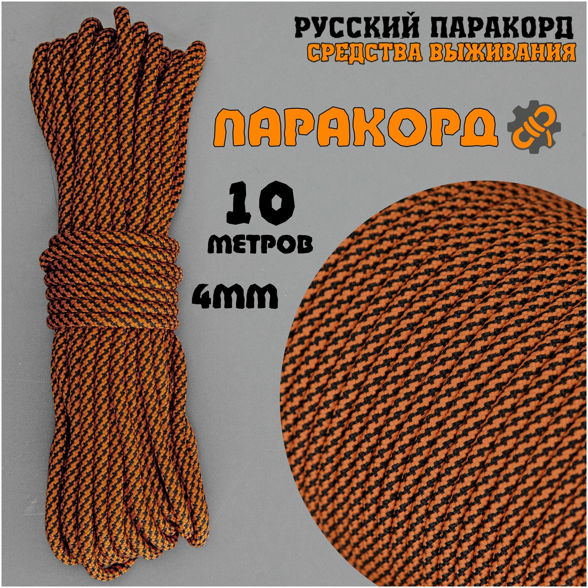 10 цен на Русский паракорд 4мм (Paracord III-550) Плетёнка, черно-оранжевая (10 м)