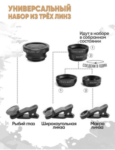 Линза для камеры телефона / набор / линзы / макро линза для телефона / объектив / макро линза / 3 шт информация:
