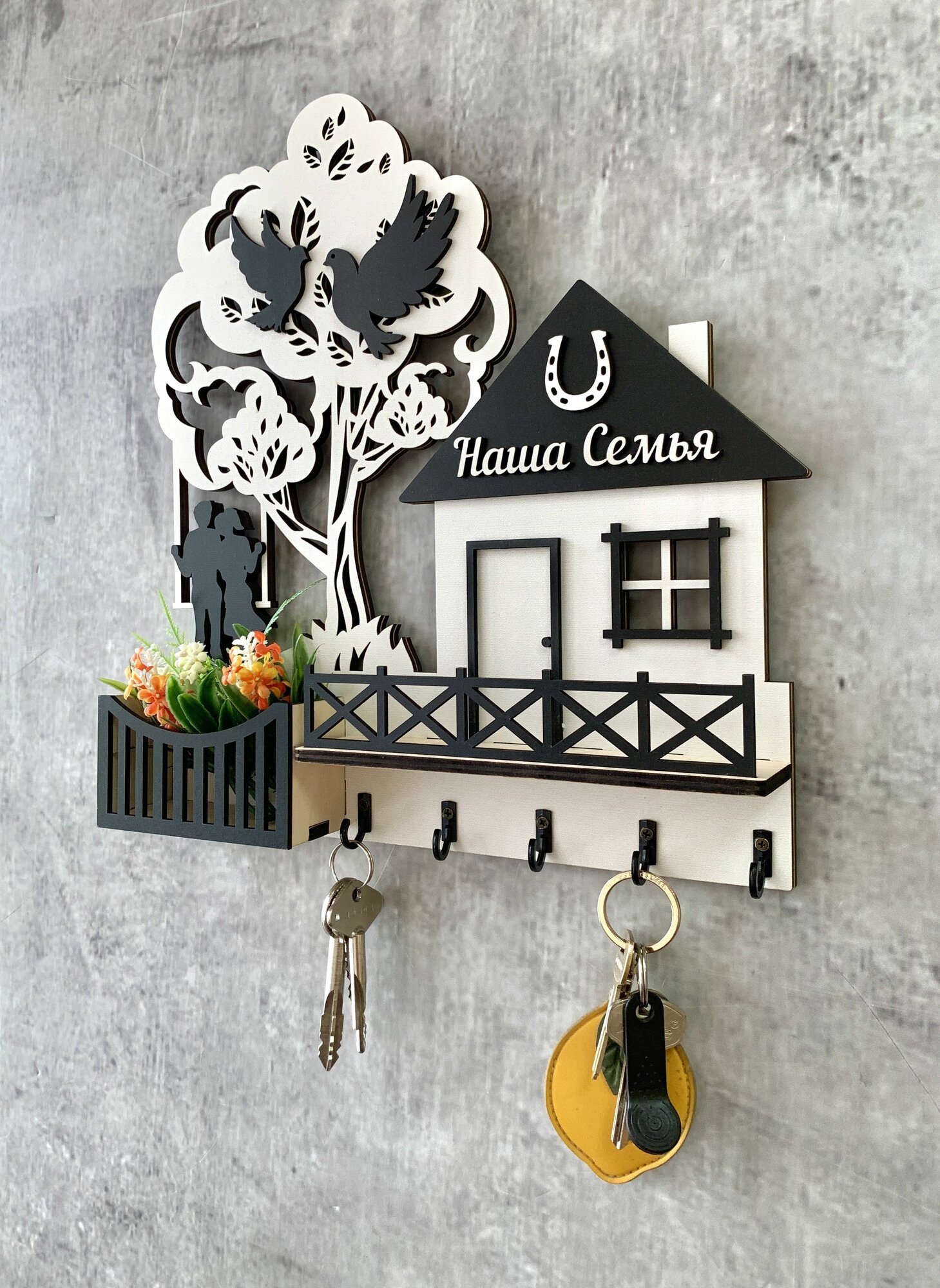 Ключница настенная с фамилией именная "Дом Семьи Васильевых" в прихожую