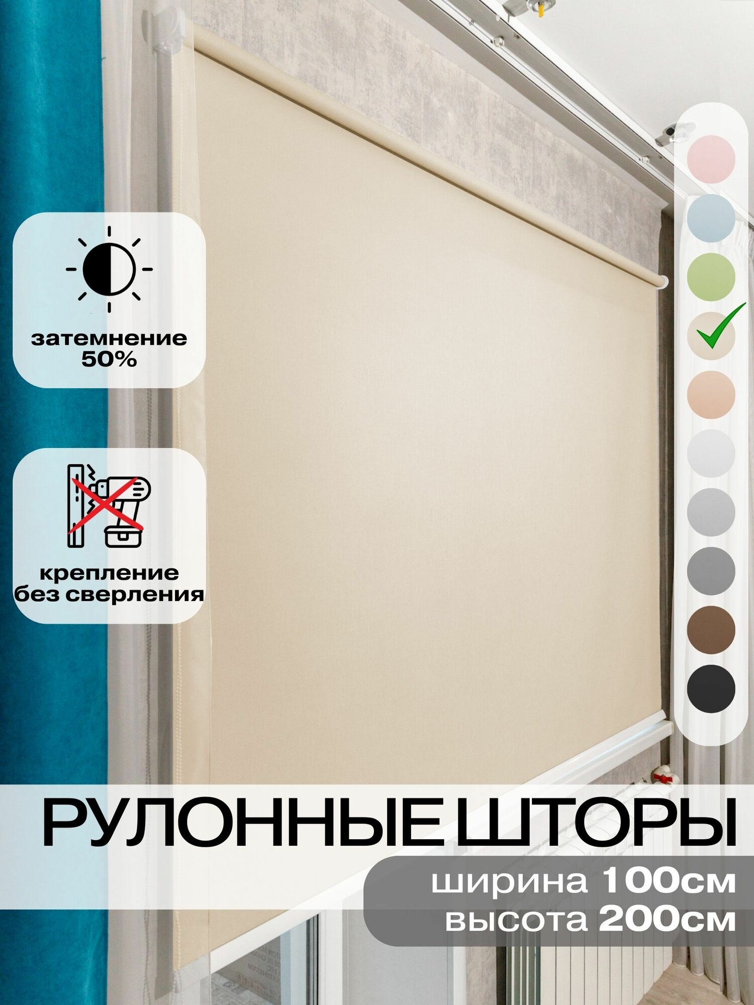 Рулонные шторы ширина 100 на 200 см бежевые жалюзи на окна информация:
