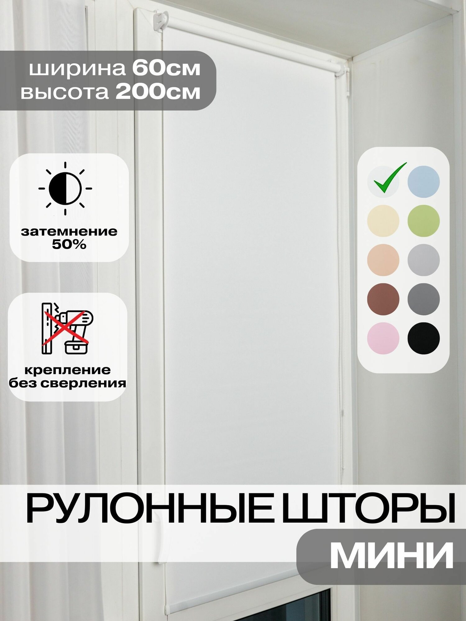 Рулонные шторы ширина 60 на 200 см белые жалюзи на окна информация: