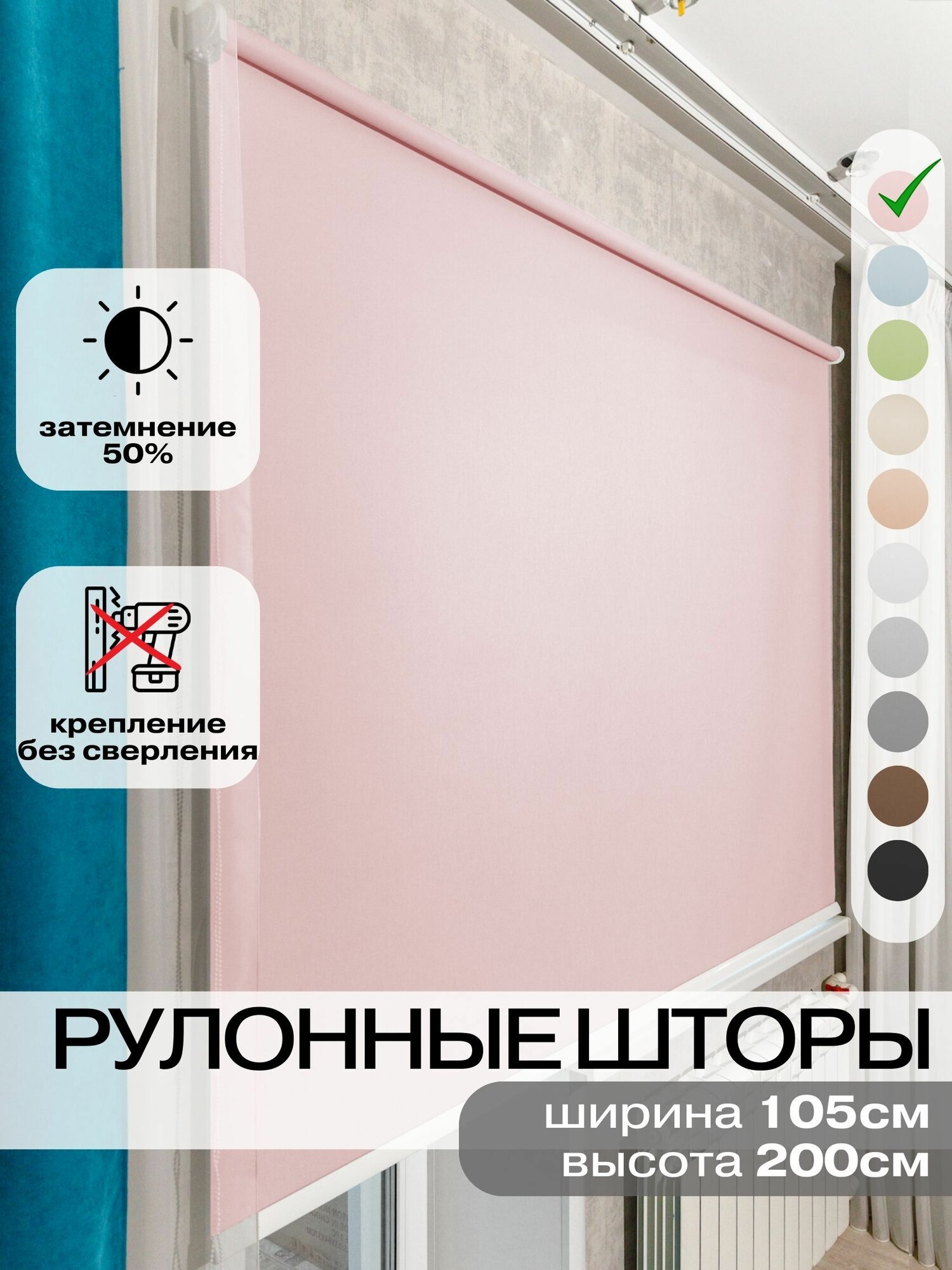 Рулонные шторы ширина 105 на 200 см розовые жалюзи на окна информация: