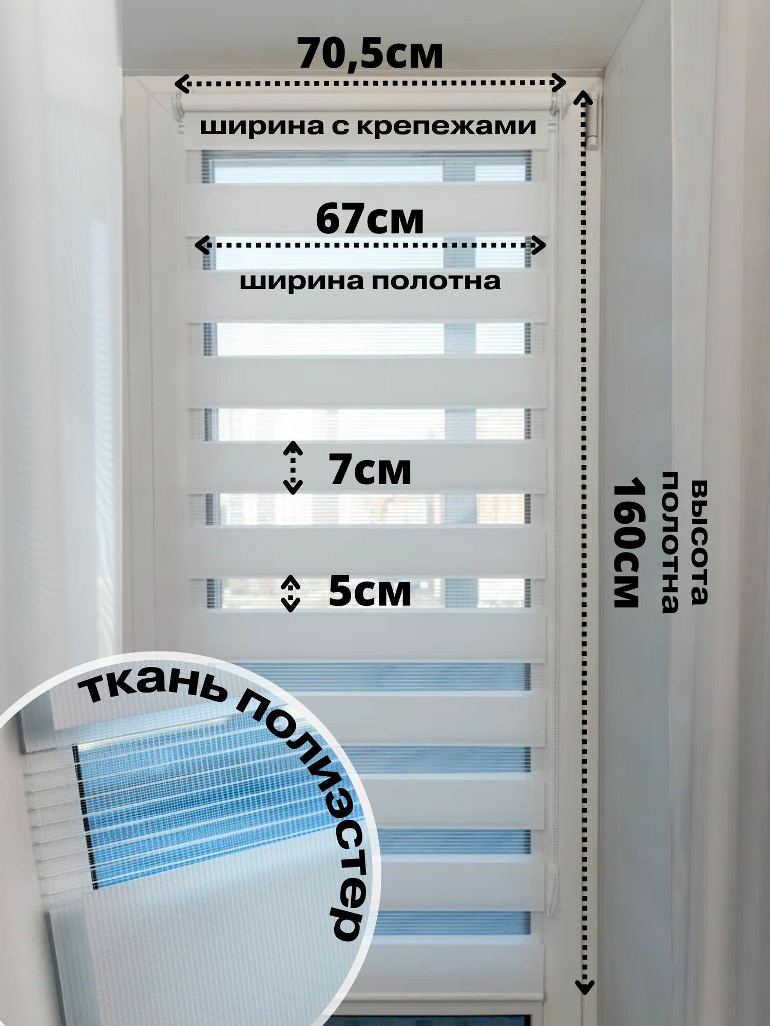 Рулонные шторы день ночь ширина 67см, высота 160 см белые жалюзи на окна Зебра для кухни, спальни, детской, на балкон информация: