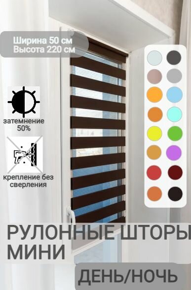 Рулонные шторы день ночь ширина 50, высота 220 см, мокко коричневые жалюзи на окна Зебра для кухни, спальни, детской, на балкон информация: