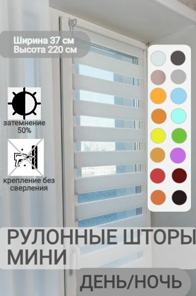 10 цен на Рулонные шторы день ночь ширина 37, высота 220 см, серые жалюзи на окна Зебра для кухни, спальни, детской, на балкон
