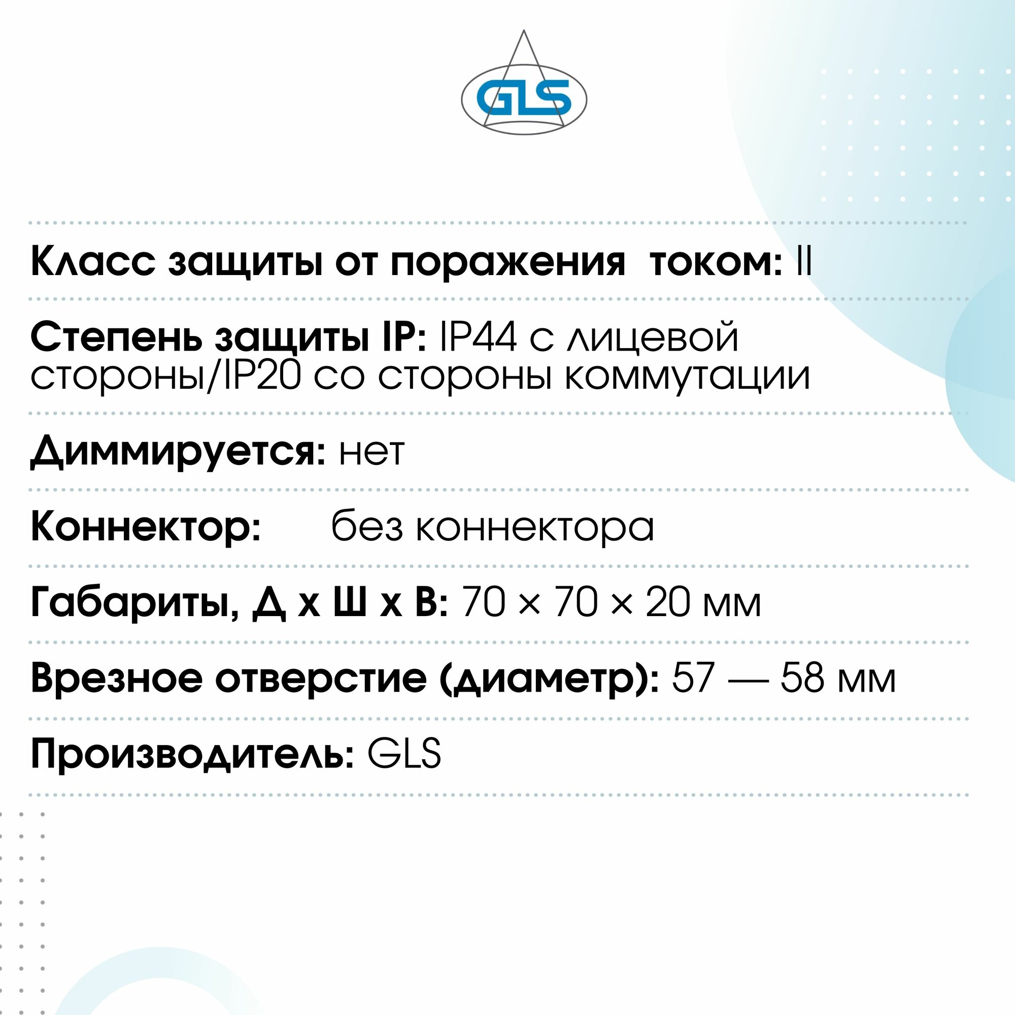 Отзывы на Встраиваемый светильник GLS LED Polus LUX, 3.5 Вт, 220V IP44, 4000К, светодиодный мебельный врезной, цвет хром