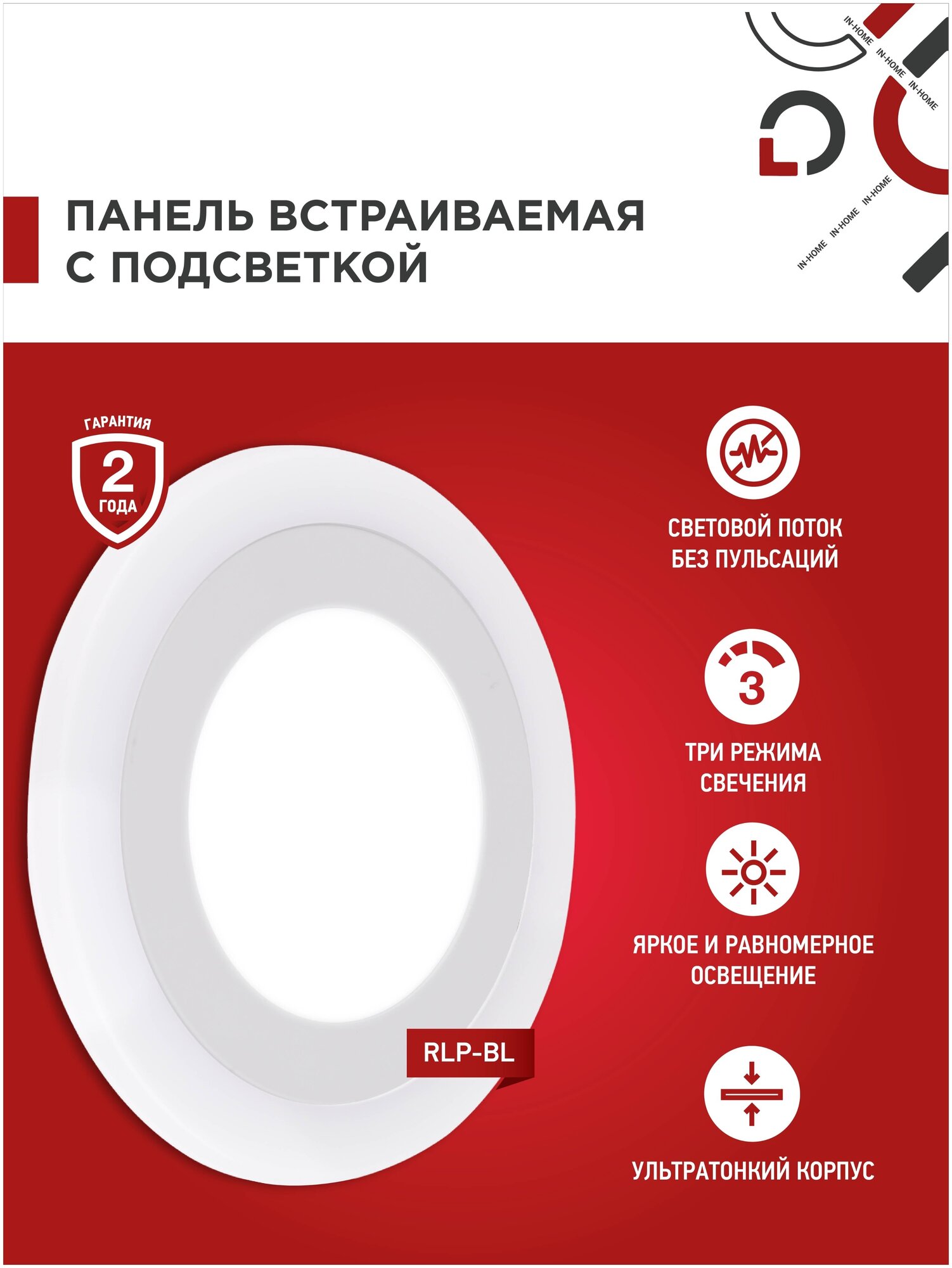 | Дополнительная информация | Светильник светодиодный встраиваемый круглый RLP-BL 24Вт 230В 4000К 1440Лм 245мм с подсветкой белый IP20 IN HOME |