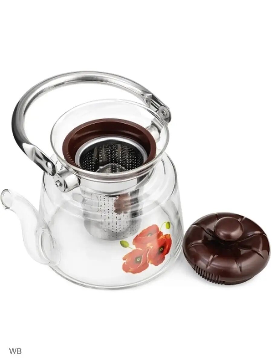 Чайник заварочный стеклянный LR06-12/ 1000мл/стальной фильтр информация: