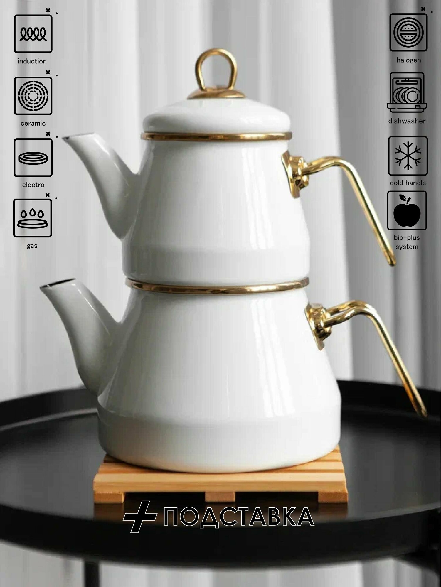 | Комплектация | Двойной чайник эмалированный 2,1 л и 1 литр подставка в комплекте |