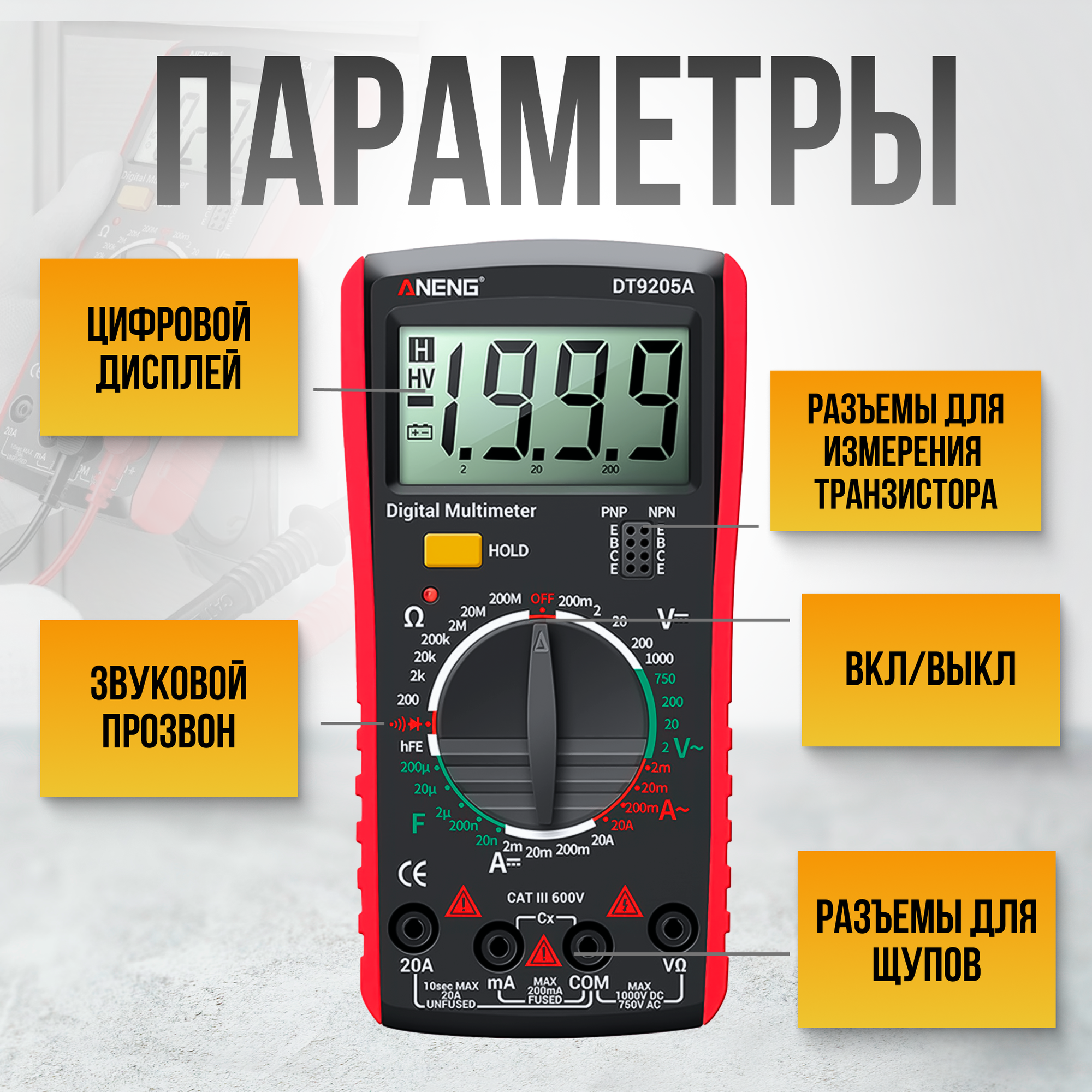 Мультиметр цифровой, тестер электрический токоизмерительный с прозвонки цепи информация: