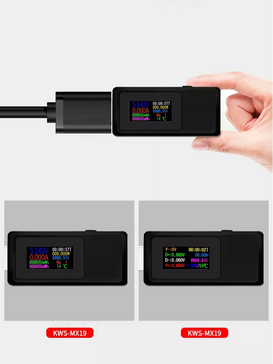 10 цен на USB тестер до 5.5А KWS-MX19, QC 2.0, QC 3.0