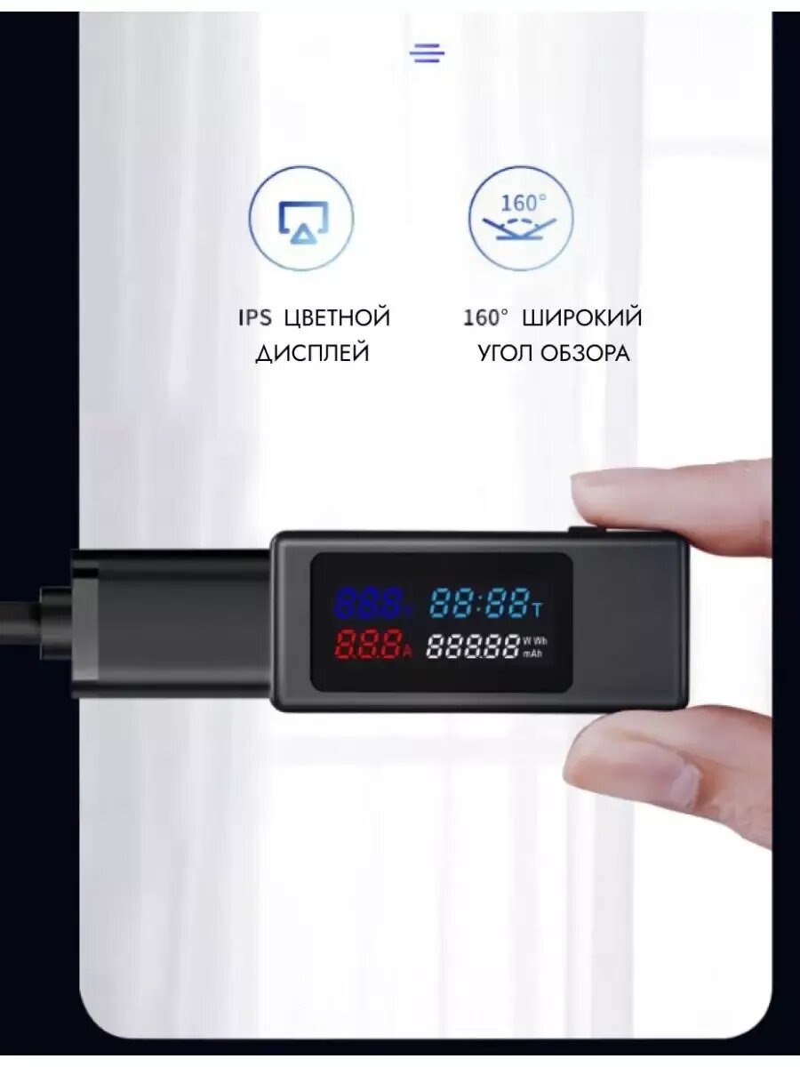 10 цен на USB тестер до 6.5А KWS-V30, QC 2.0, QC 3.0