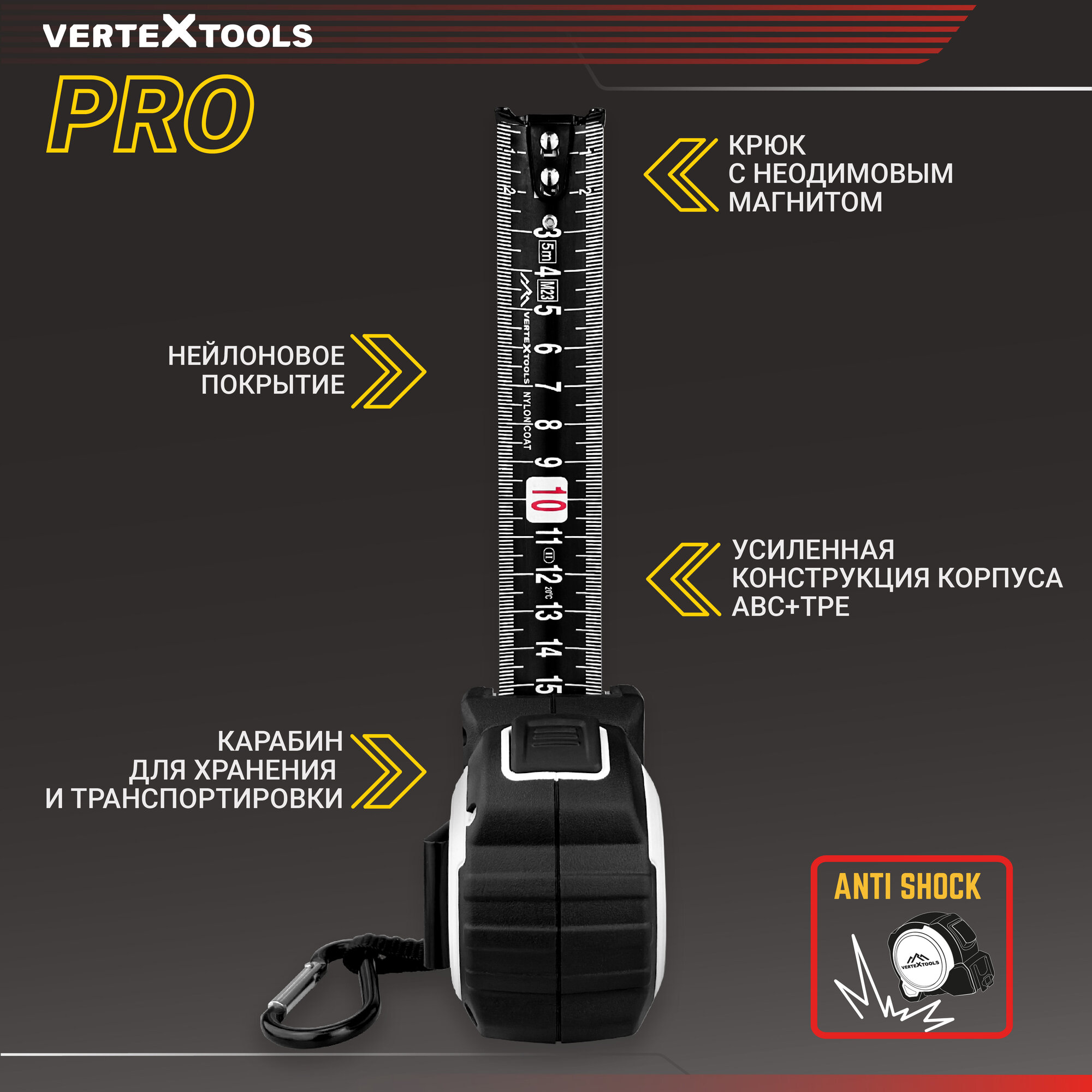 10 цен на Рулетка магнитная усиленная VertexTools "Black" 5мX32мм