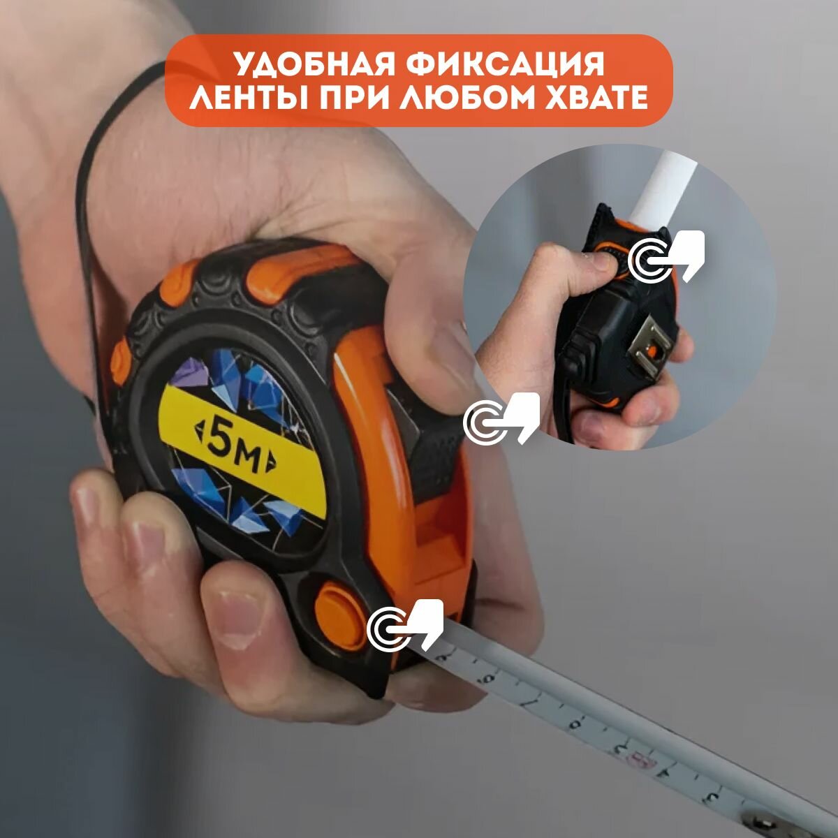 Рулетка BAUHOW 5мx19мм обрезиненный корпус, с 3 фиксаторами информация:
