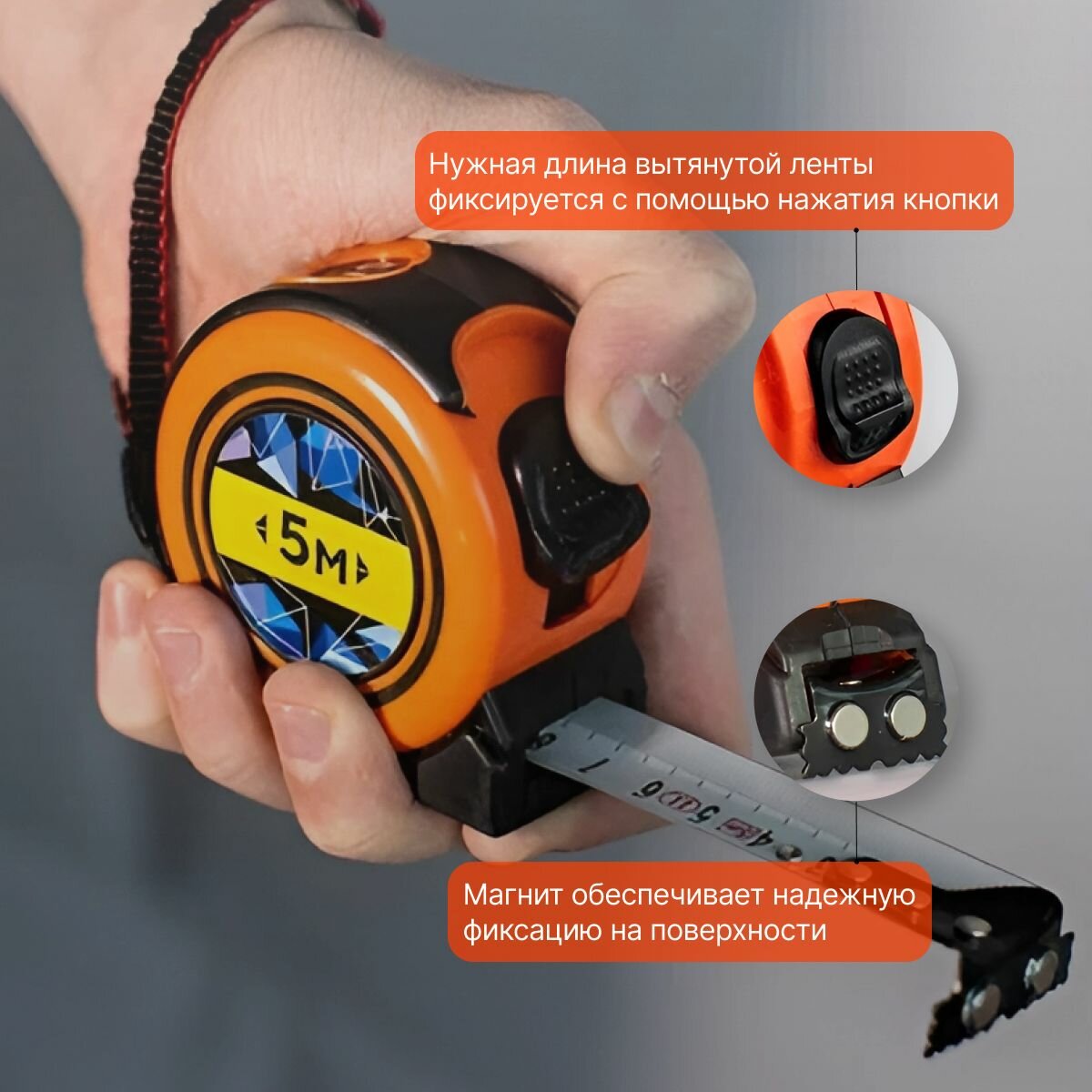 10 цен на Рулетка BAUHOW 5мx25мм с фиксатором и магнитом