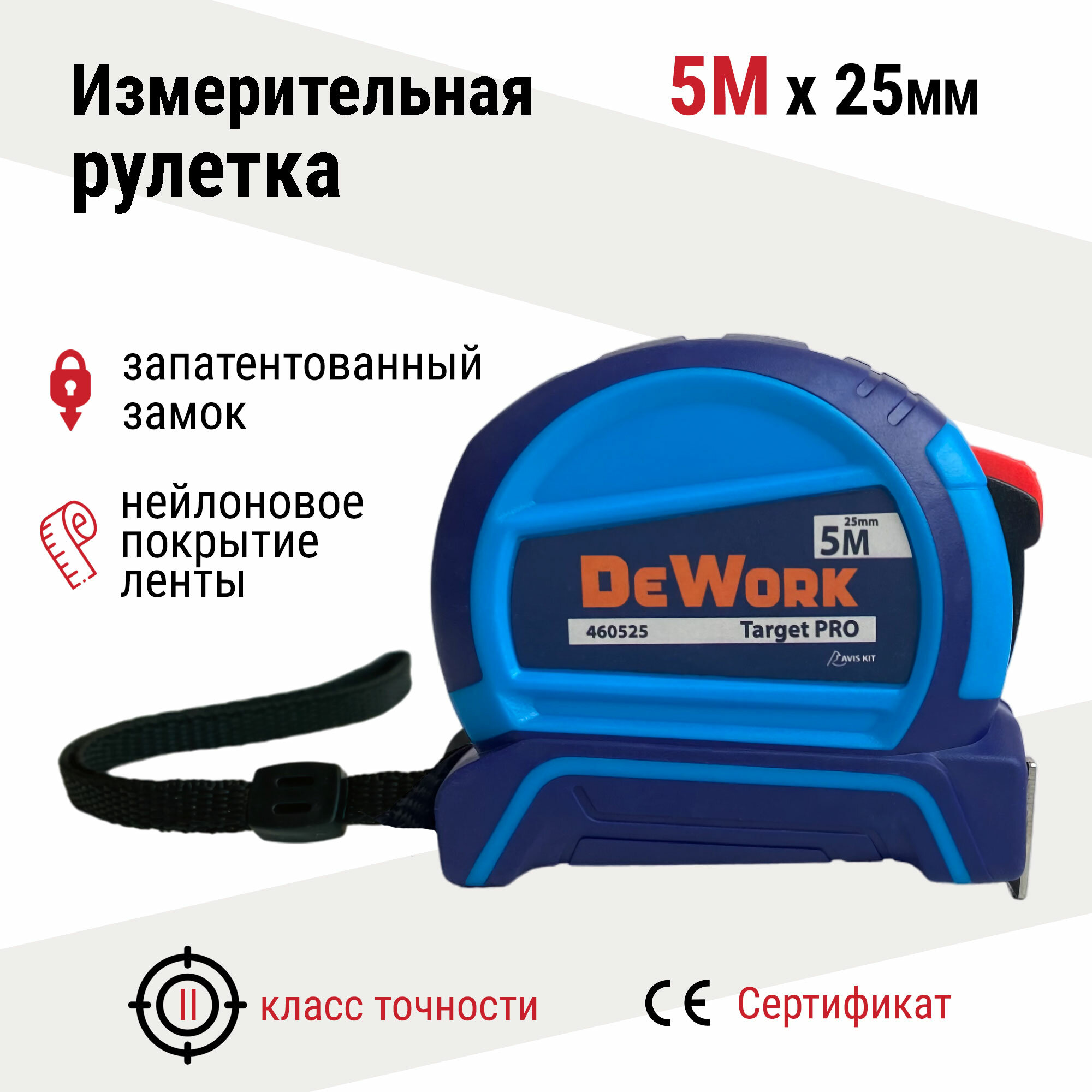 Отзывы на Рулетка строительная DeWork Target PRO 5м x 25мм с автостопом, магнитный зацеп, двухкомпонентная