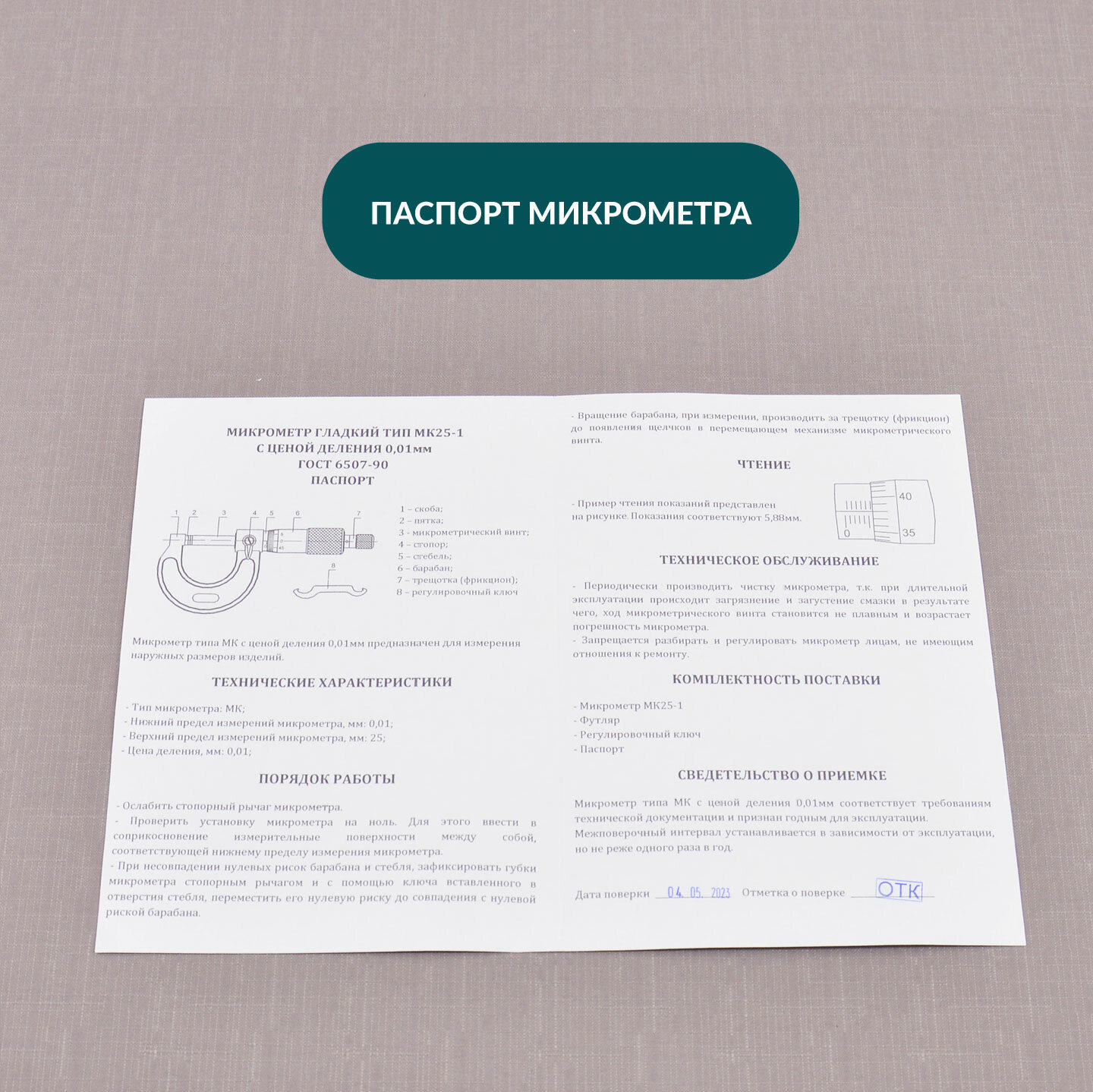 Микрометр нониусный 0-25 мм, 0,01 мм информация: