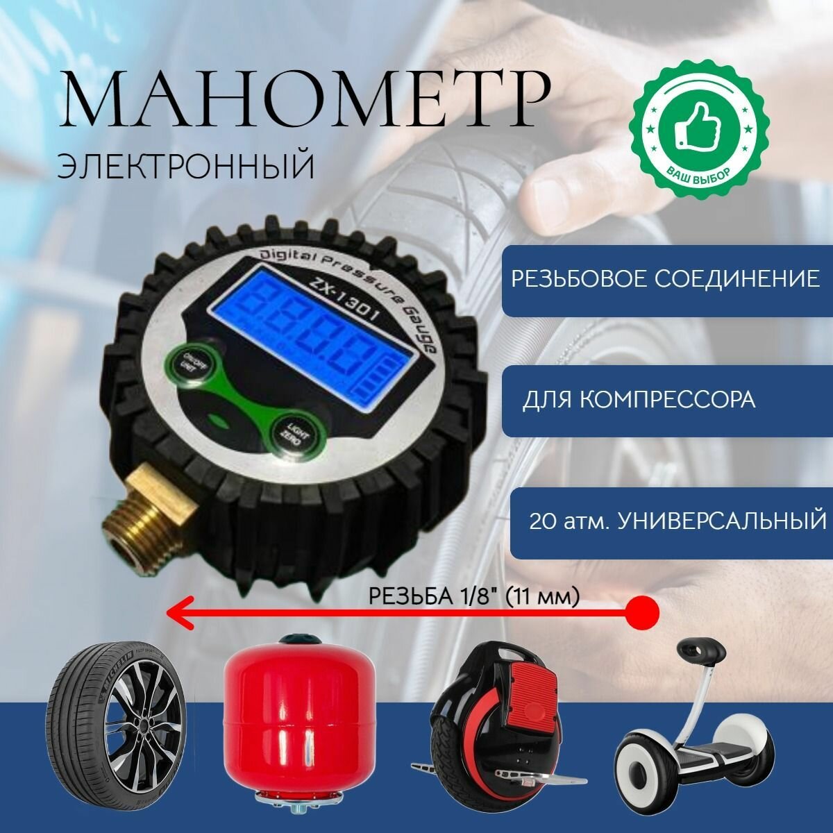 Отзывы на Манометр автомобильный для шин 1/8 11мм, измеритель давления электронный
