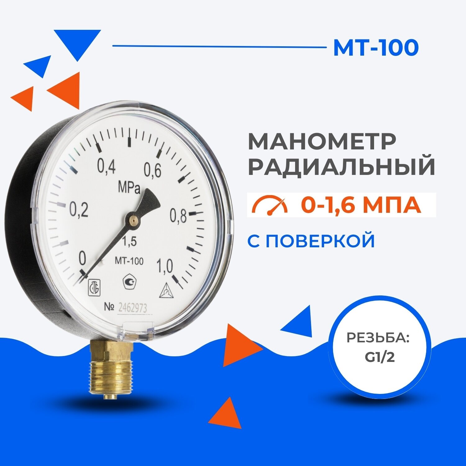 10 цен на Манометр радиальный МТ-100 с поверкой 0-1,6 МПа, резьба дюймовая